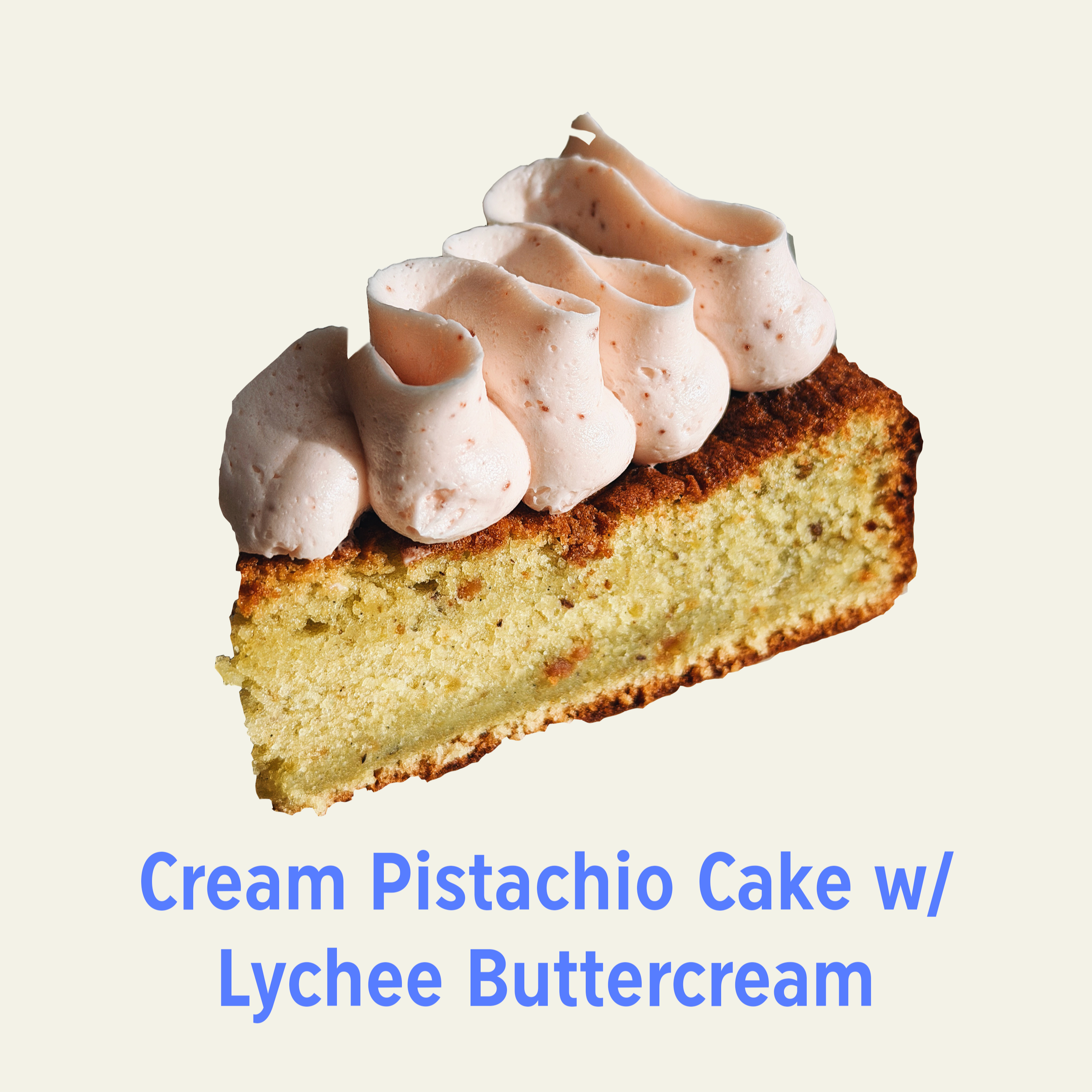 Ingredients: Butter, sugar, egg, vanilla extract, water, flour, baking soda, salt, matcha powder, white chocolate, pistachios.